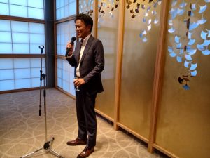 最後には、会場を移動して、櫛田神社に隣接された「宮前迎賓館 燈明殿」にて懇親会を行いました。